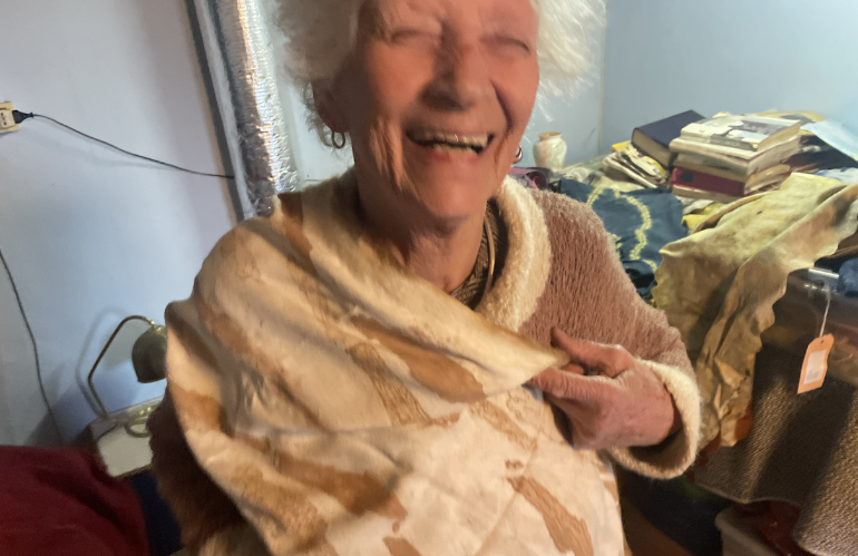 Con il compagno Rodolfo sceglie di allevare pecore sopra Pescia a Santa Margherita. Da qui nasce un processo completo: tosatura, lavaggio, tintura con piante, filatura a mano e tessitura al telaio. Ogni passaggio viene seguito direttamente. La lana non è solo materiale, ma punto di partenza di una filiera interamente controllata.